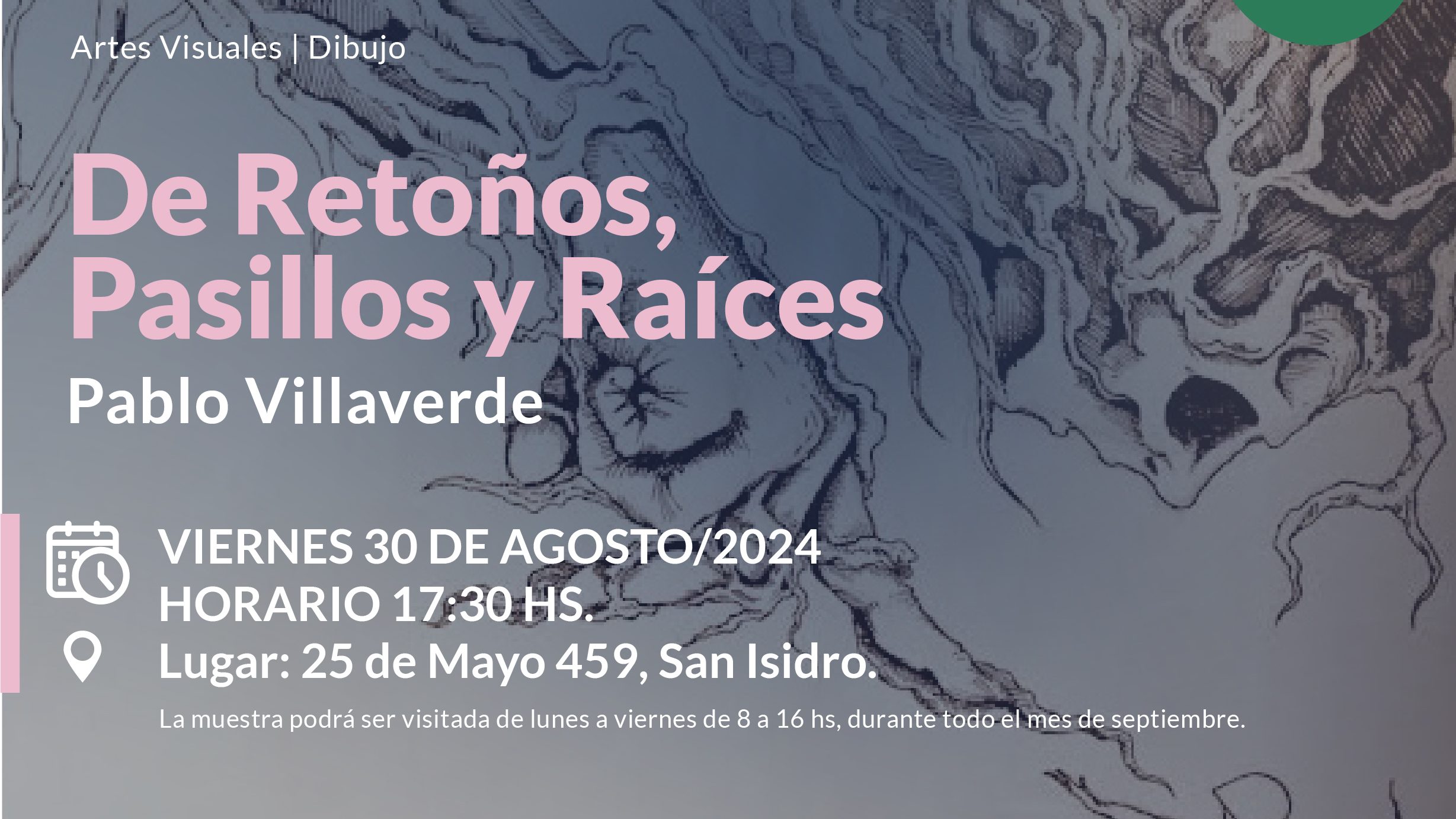 La muestra del vecino de San Isidro y artista plástico Pablo Villaverde se inaugurará el viernes 30 de agosto, a las 17.30, en el Concejo Deliberante de San Isidro (25 de Mayo 459). Entrada libre y gratuita.