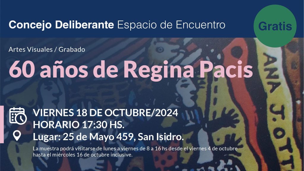 Se recuerda que todas las actividades culturales organizadas por el Concejo Deliberante de San Isidro son gratuitas y no se necesita retiro de entradas o reservas previas.
