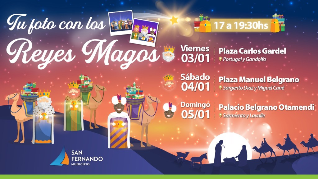 Melchor, Gaspar y Baltasar, regresan para tomarse fotografías de impresión instantánea de 17 a 19:30h el viernes 3 de enero en la Plaza Carlos Gardel (Quintana y Portugal); el sábado 04/01 en la Plaza Manuel Belgrano (Sargento Diaz y Miguel Cané) y el domingo 05/01 en el Palacio Belgrano Otamendi (Sarmiento y Lavalle). Los eventos son libres y gratuitos.